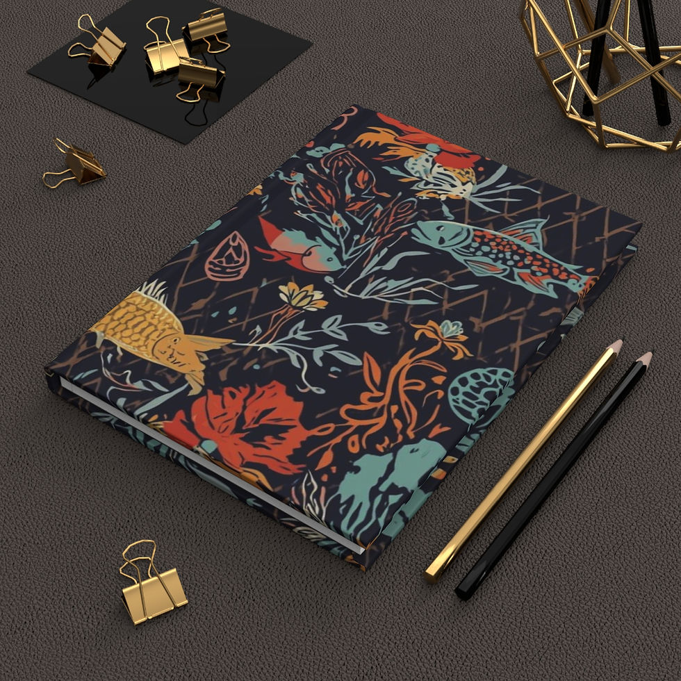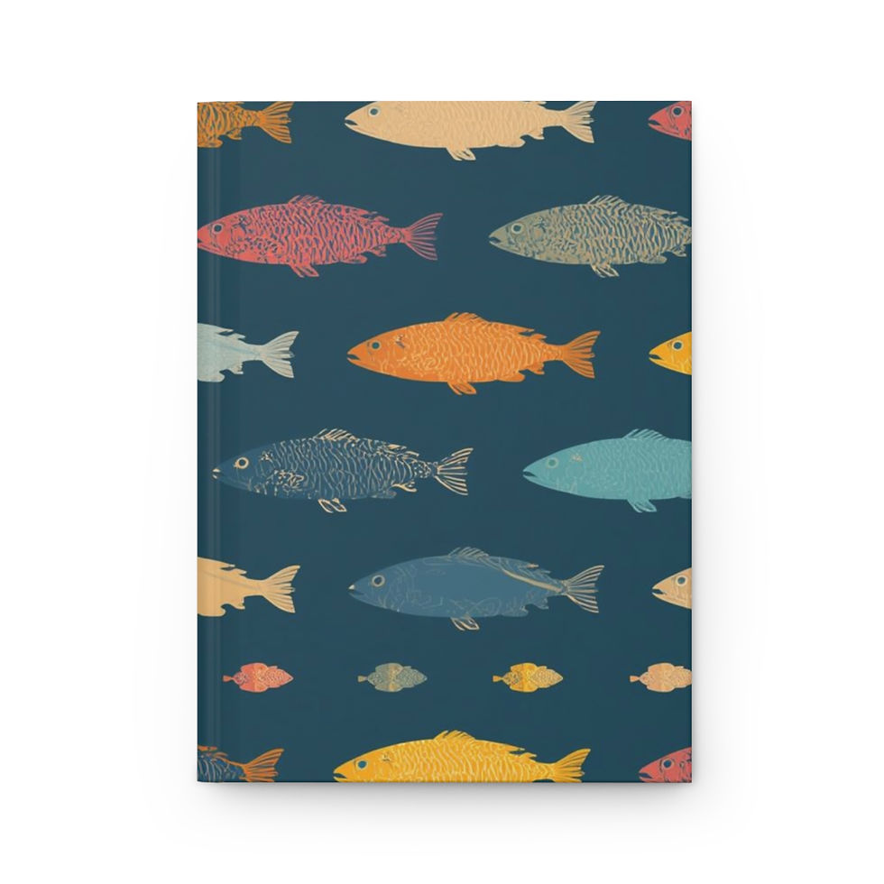 Nautical Fish Pattern Hardcover Journal — Colorful Retro Fish Notebook