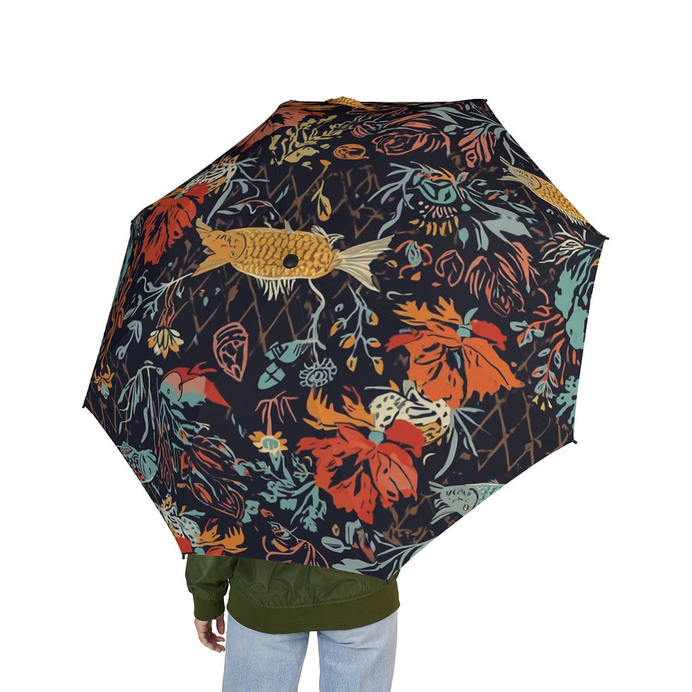 Botanical Fish Pattern, Semi-Automatic Umbrella