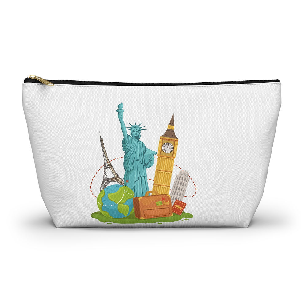 Travel Icons Accessory Pouch — Passport, Suitcase & Landmarks Cosmetic Bag